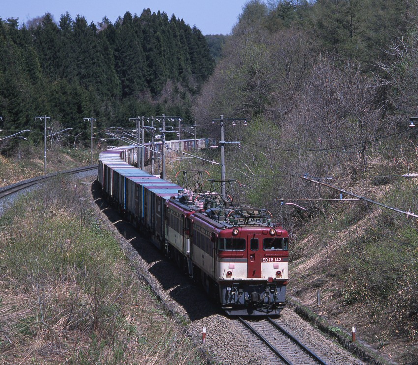 -(287 KB)かつてはD51の3重連が活躍した地を今はモーター音を唸らして電気機関車が登って行きます。