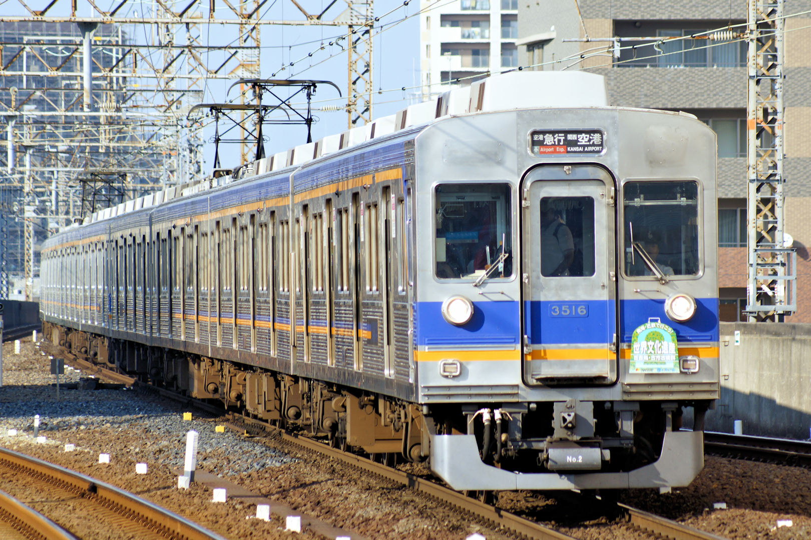 百舌鳥・古市古墳群世界文化遺産登録記念キャンペーンで、南海、近鉄、阪堺、南海バスの共通デザインロゴのHM 掲出した3000系3513F+3515F