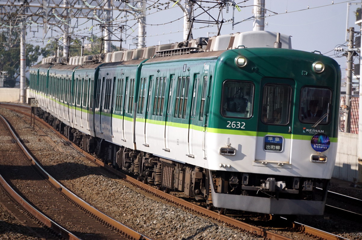 これは正月ダイヤならではですね。1000系はアートエリアB1のヘッドマークが付いています。これももうすぐ見納めですね。香里園にて。