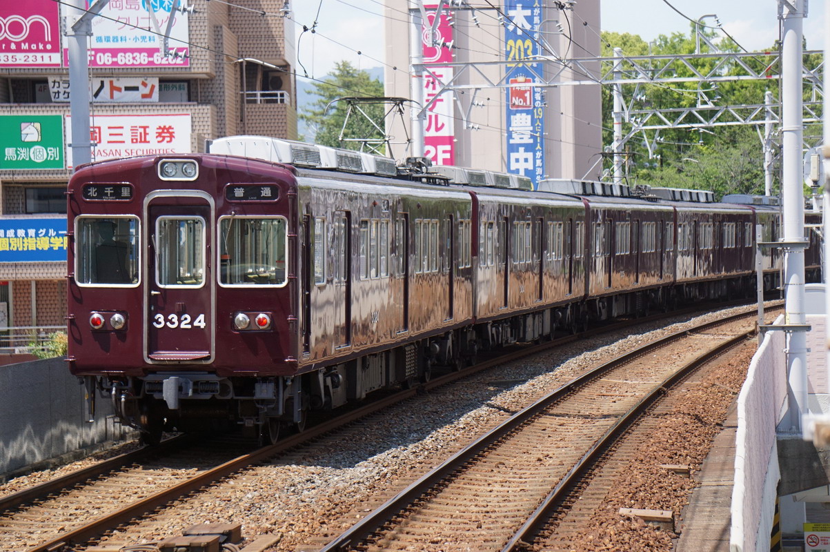 編成内でクーラーが新旧混在していますね。南千里にて。