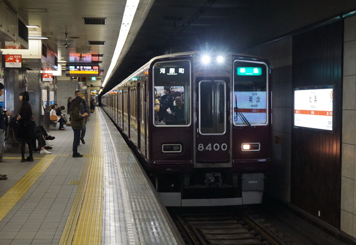 阪急(関西大手私鉄初)のホームドア運用が9/8より開始となりました。(写真は9009F)2018年9月8日十三駅 宝塚線下り4号線ホームにて