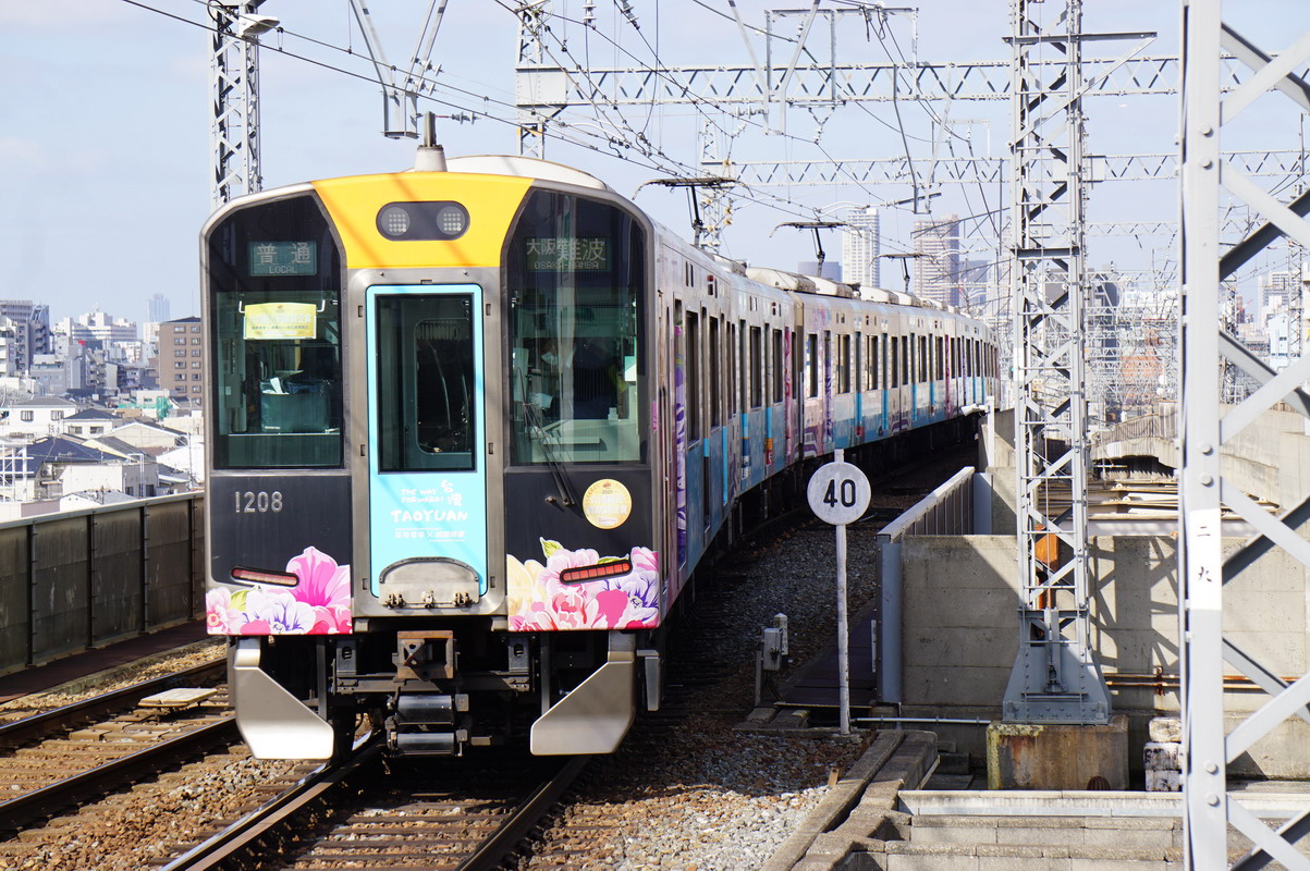 台湾観光貢献賞受賞記念デザインの副標と台湾観光貢献賞受賞記念デザインのステッカーを提出している、1000系1208F『阪神電車×桃園メトロ連携記念ラッピング』