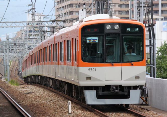 なんでもこの車両から37年ぶりにクロスシートが復活したとか。昔の言葉で言う「赤胴車」の色を反転させたところも、結構な意欲作だと思います。 平成22年6月20日 尼崎