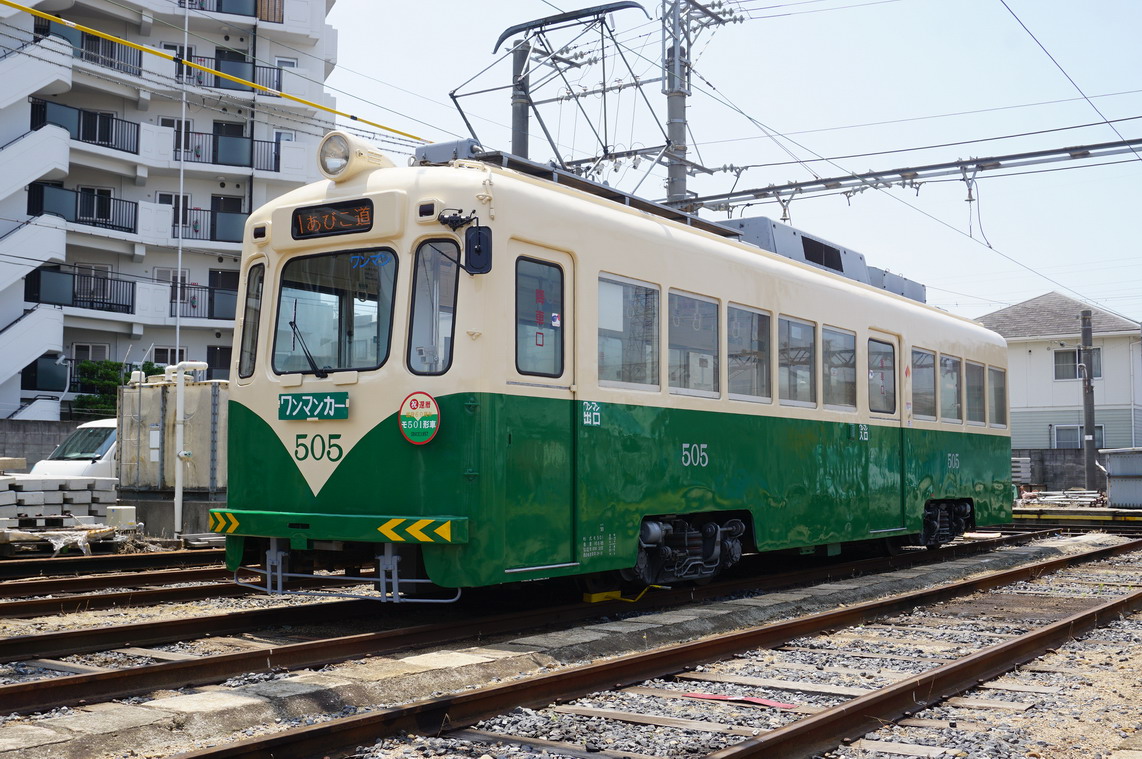 1号線運用に入る元神戸市電1150形1156号。側面窓を大きく広げた神戸市電独特の特徴あるスタイルでこれまた唯一の生き残り。もとは平行カルダン車でしたが保守上の都合から吊掛式に変更されています。570形といい神戸市電の車両デザインは本当に洗練されていますね。