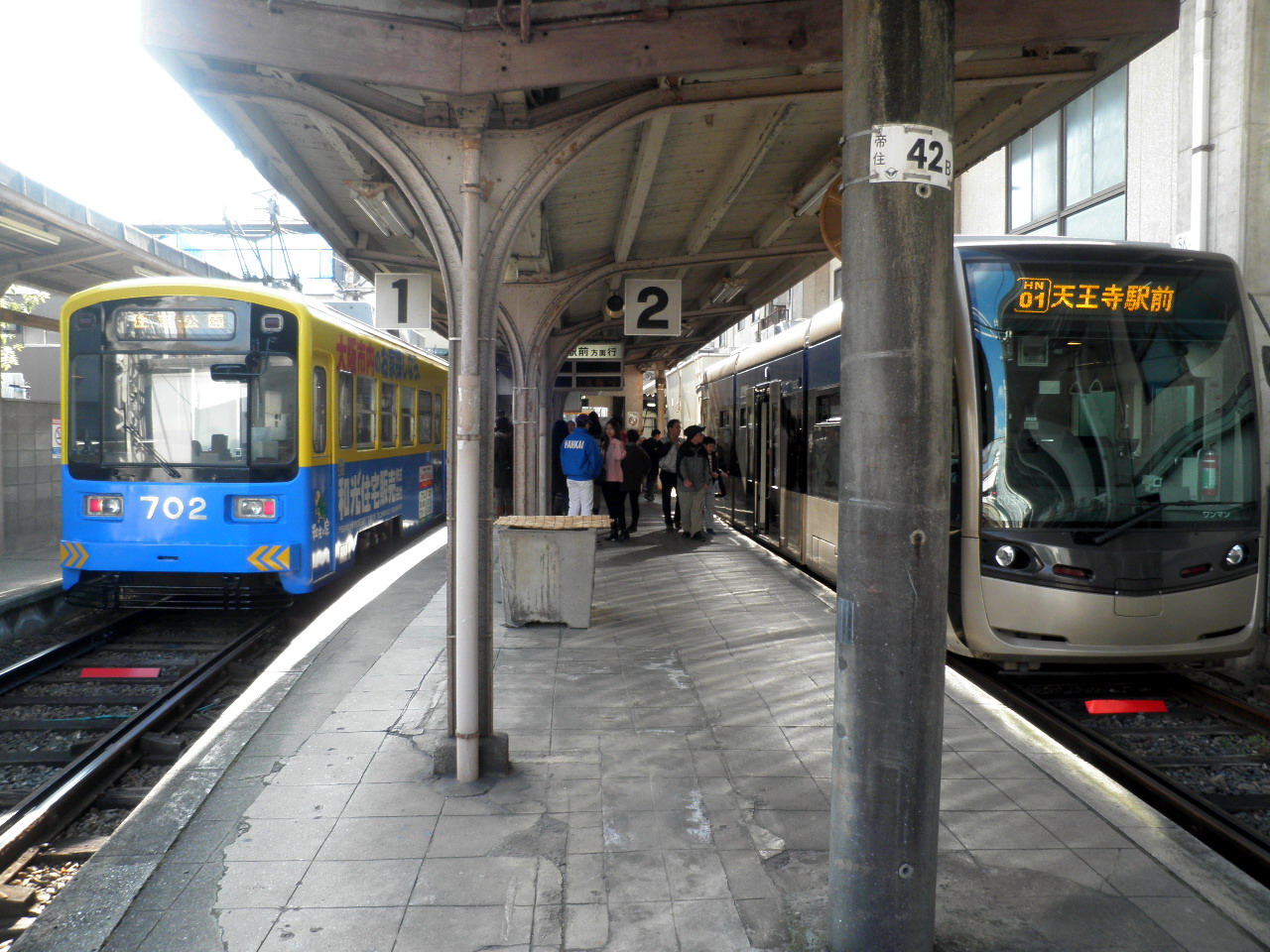 2016年1月いっぱいで廃止される住吉公園駅ですが最後の正月を迎えました。普段は朝だけ営業ですが正月3が日は終日電車が入ります。堺トラムも入線します。
