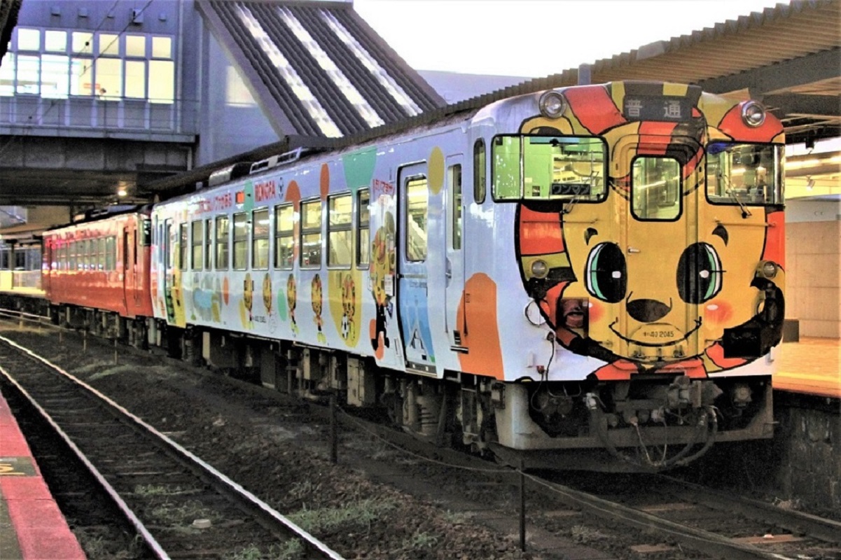 快速アクアライナー益田行きに運用されている、キハ126系1次車『石見神楽』ラッピング車〔米子-安来間〕