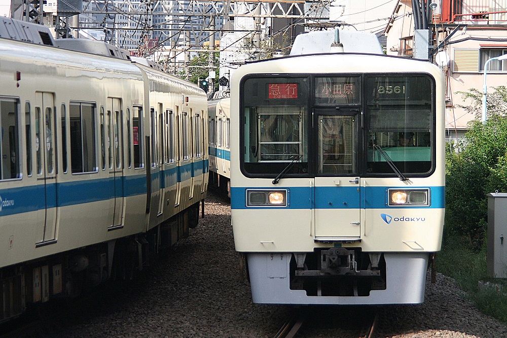 ヘッドライトがシールドに変更されています。ところで新しい小田急顔は何型になるのでしょう。鶴川駅付近