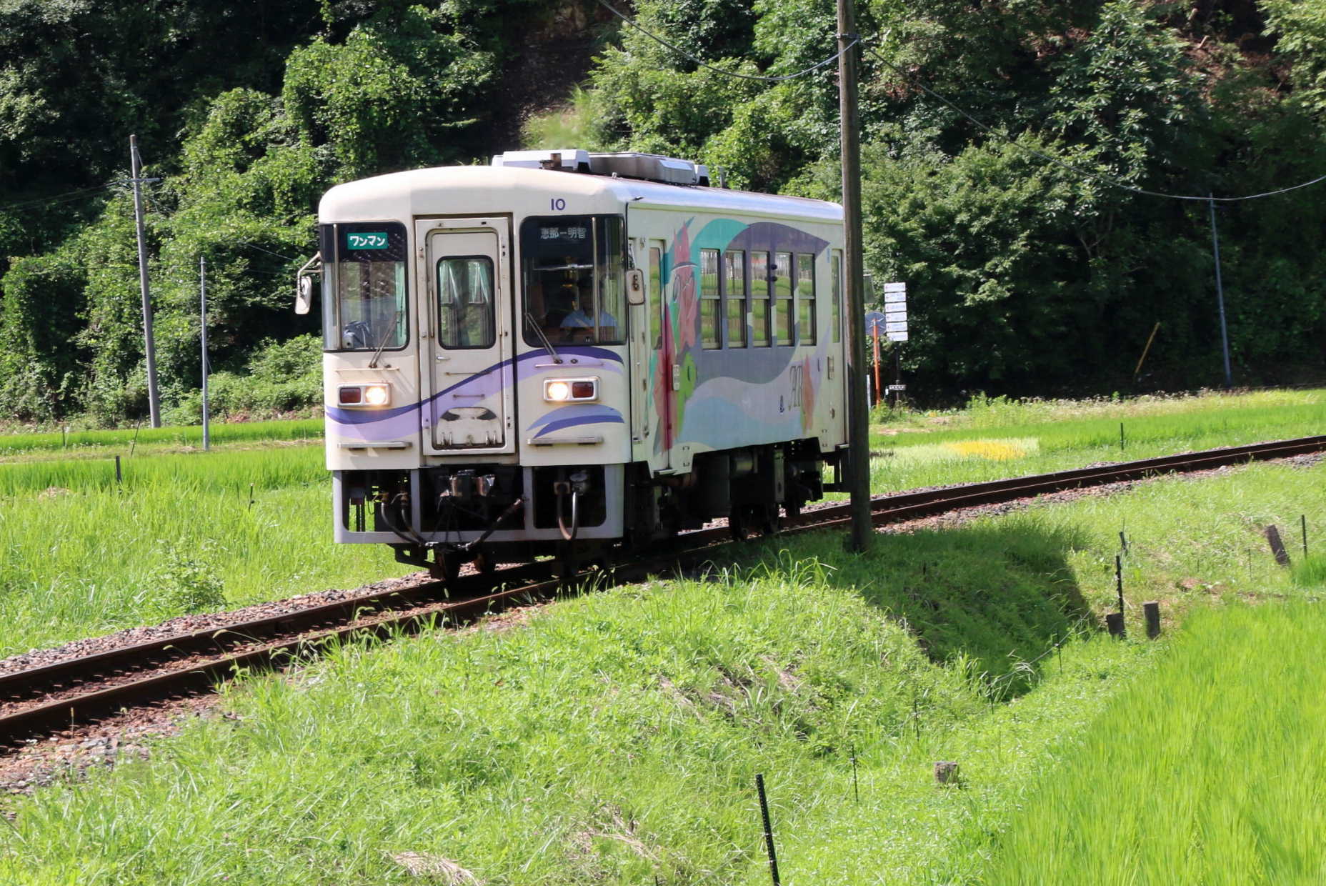 谷汲口-木知原 この間の沿線は桜並木が有名で、春には大変賑わっていますが、先の台風21号・25号によって殆どがなぎ倒された様です。沿線と並行する国道からは安全の為に根元付近から切られた桜が痛々しい姿を晒していました。来年は寂しくなります。 2018/10/17