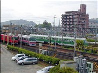 新旧列車が並ぶ犬山検車場