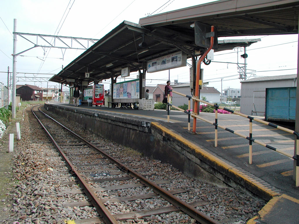 1913年(大正3)2月5日に「大浜港」として開業、1954年(昭和29)4月1日に「碧南」に駅名改称された。 かつては大浜口支線が分岐していた。三河海線の主要駅としての設備をもち、構内にはLEカーが駐留していた。 2004年3月31日をもって碧南〜吉良吉田間が廃止となり、三河線の終着駅となっている。 2005年8月25日に無人化され、9月14日からトランパス対応が行われている。 |