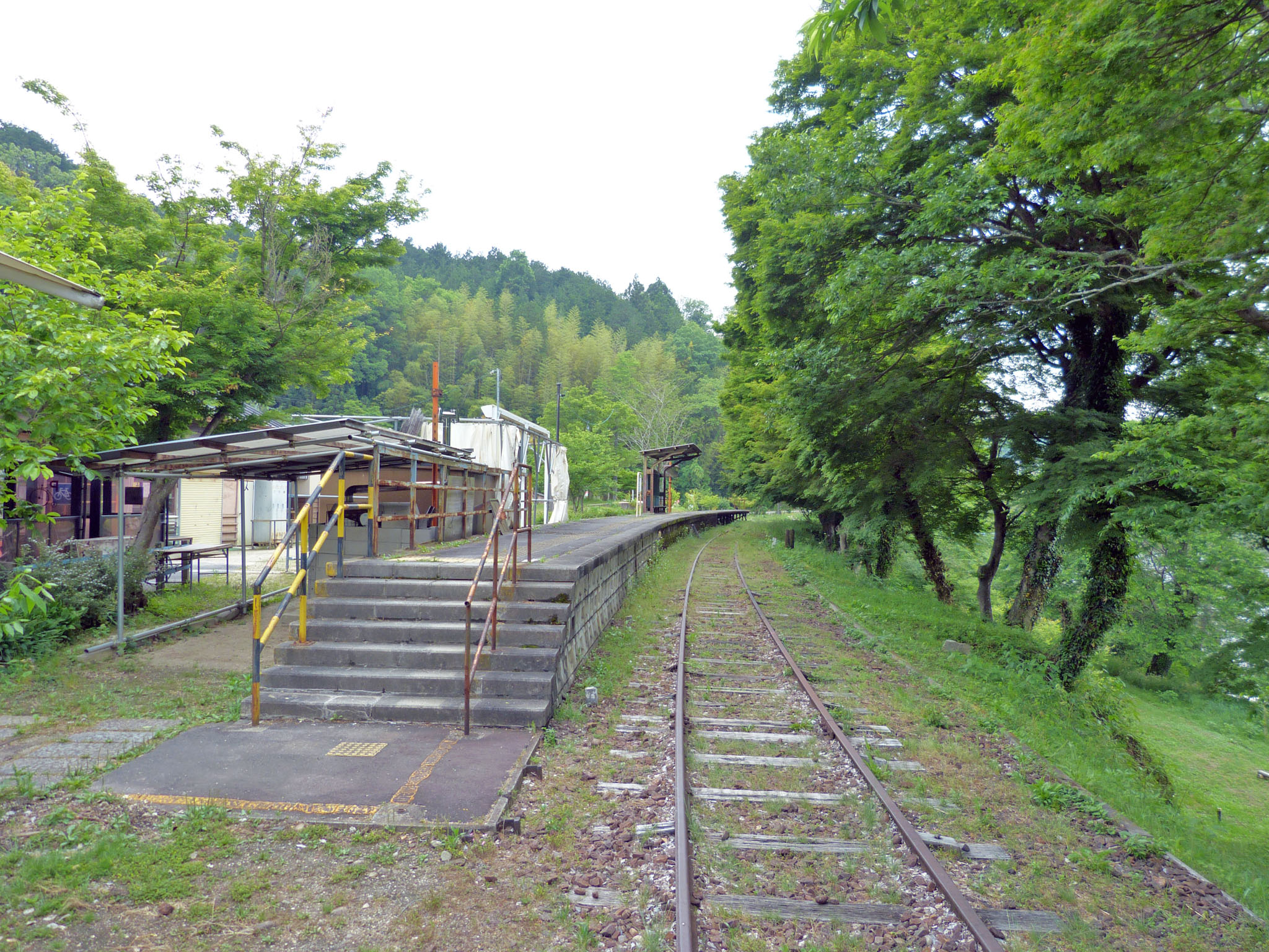 1927年(昭和2)8月26日開業。1984年(昭和59)1月16日にに無人化された。 元は交換設備を有し、貨物輸送も行われていたが、末期は広い構内にLEカーがひっそりと発着していた。 2004年3月31日を最後に列車は来なくなったが、駅施設は保存され、現在もコミュニティーバスの発着場として活用されている。 |