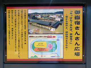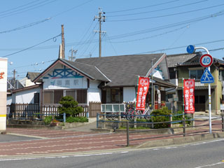 岐阜県可児郡御嵩町中に位置する広見線の終着駅。 1面1線の簡単な行止りの構内で、特徴ある立派な木造駅舎を有している。 名古屋方面への直通列車も設定されていたが、2008年6月29日のダイヤ改正から新可児〜御嵩間は運用分離されワンマン化される予定である。 旧駅事務室には観光案内所が設置され、駅南側には足湯施設「御嶽宿さんさん広場」も設置されている。 |