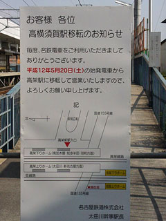 高横須賀駅画像1-10へもどる 切替後の旧地平仮ホーム(FREE)撮影日:[2000,5,21] VGA 地平ホーム閉鎖による看板(FREE)撮影日:[2000,5,21] VGA 高横須賀駅・裏側(FREE)撮影日:[2000,5,21] VGA 高横須賀駅・改札口付近その1(FREE)撮影日:[2000,5,21] VGA 自動改札機の使用は23日から(FREE)撮影日:[2000,5,21] VGA 高横須賀駅・改札口付近その2(FREE)撮影日:[2000,5,21] VGA 設置されたエレベーター(FREE)撮影日:[2000,5,21] VGA 高横須賀駅・ホーム上(FREE)撮影日:[2000,5,21] VGA 到着した太田川方面・普通列車(FREE)撮影日:[2000,5,21] VGA 到着した知多半田方面・普通列車(FREE)撮影日:[2000,5,21] VGA 高横須賀駅画像21-30へすすむ |