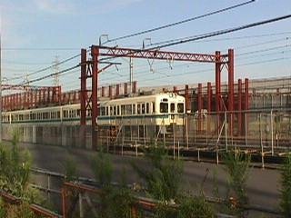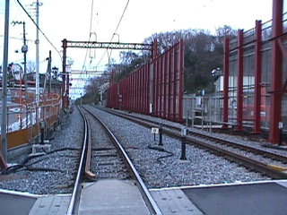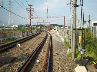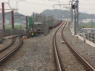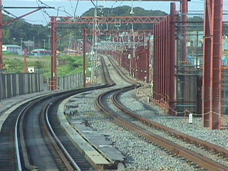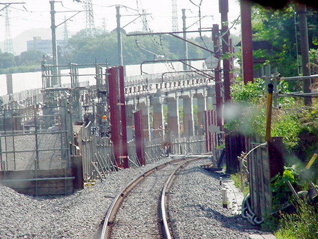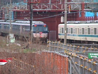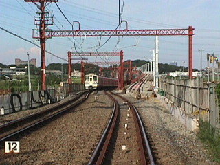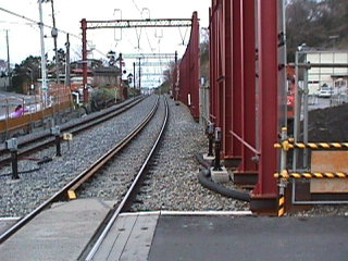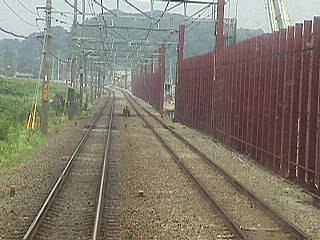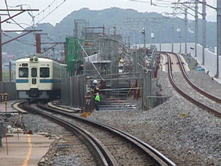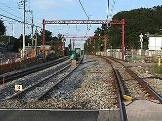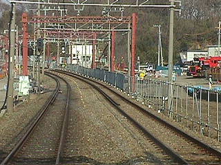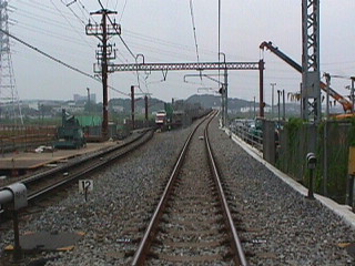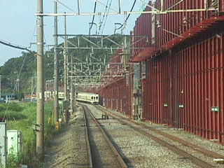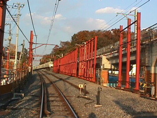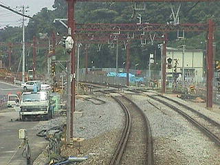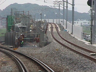 伊勢原側仮線路盤(列車通過時)[1999,3]<元嶋さん提供>