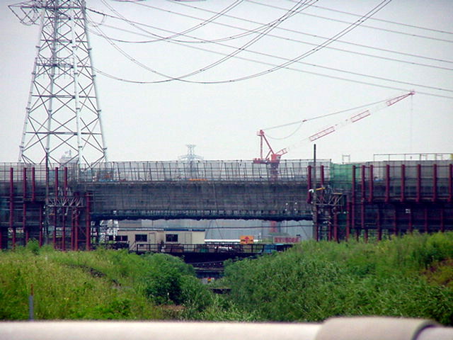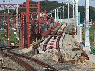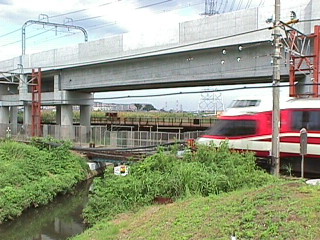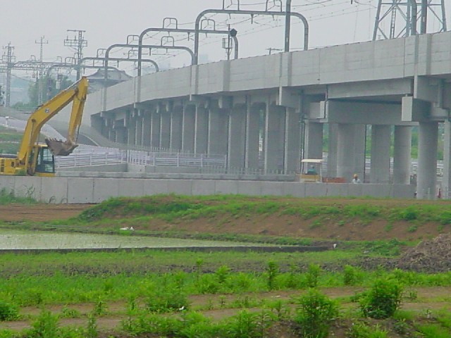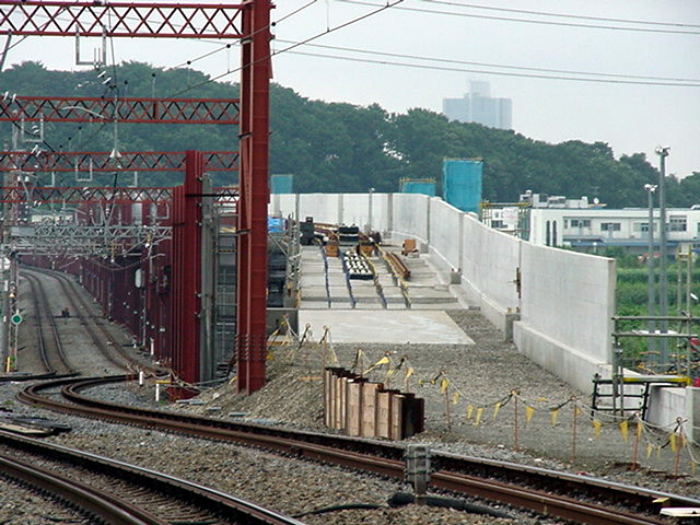 歌川鉄橋個なり進展している高架工事所[1999,7]<元嶋さん提供>