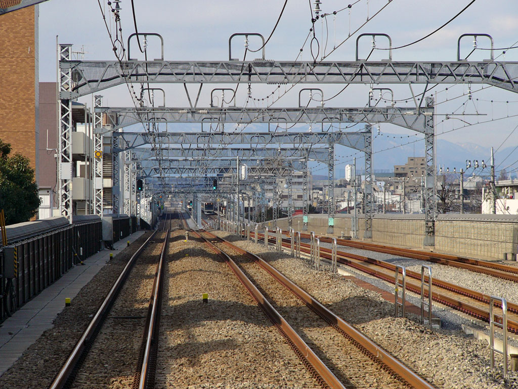2002年5月現在、同区間に中線が敷設されて渡り線も設置されている。