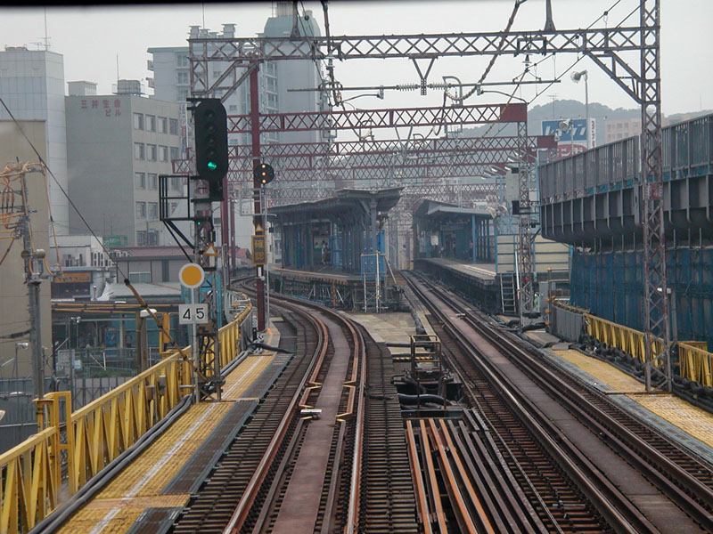 急行停車駅で、JR南武線との乗換駅。現在、2面3線化工事が行われている。 2001年8月現在、下りホーム配線が変更されて線路が海側に移設されている。 2002年5月現在、旧上りホームが撤去され、仮島式ホームへと変更されている。 2002年8月現在、引き続き新橋梁付近の工事が進んでいる。 2003年1月26日、上り線が新多摩川橋梁に移転したことに伴い、上りホームも新設の山側へ移転した。島式だった下りホームは下り専用ホームに変更されている。 2003年9月現在、引き続き下り線の新ホーム移設工事が進められている。 2004年1月現在、大きな変化はみられない。 2005年2月現在、下り線が新ホームに移転している。 2005年8月現在、旧下り仮ホーム付近にて工事が行われている。 2007年7月現在、下り新ホームが姿を現し工事が進められている。 2008年8月現在、新上りホームの使用が開始されている。 関連リンク:和泉多摩川〜登戸間 登戸〜向ヶ丘遊園間 登戸駅周辺地図(マピオン) ![]() |