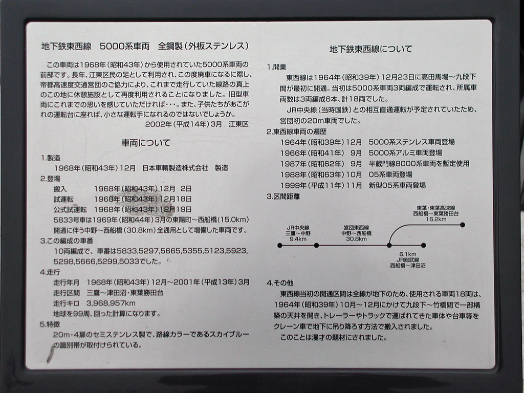 中野に到着した5000系5009F画像提供:1380さん[2007,3,17] SVGA XGA 入れ替えを行う営団5000系ステンレス車(行徳検車区)画像提供:杉岡健二さん[2000,7,9] SVGA XGA アルミ試作車の5950(中野)画像提供:1380さん[1998,12,20] SVGA XGA 5952(綾瀬検車区)画像提供:KDさん[2007,12,15] SVGA XGA 5833・運転台(FREE)撮影日:[2002,9,15] SVGA XGA 上屋が設けられた5833(FREE)撮影日:[2002,9,15] SVGA XGA 5000系・説明板(FREE)撮影日:[2002,9,15] SVGA XGA |