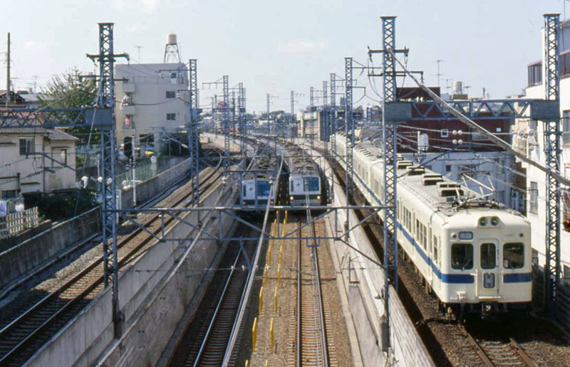 小田急2200形と営団6000系の離合(代々木上原〜代々木八幡)