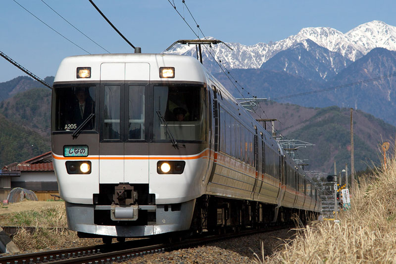 1994年に登場した381系の後継車両。 自然振子式の欠点を補った制御式自然振子を採用し、大幅に乗り心地が改善されている。 また、JR東海初のVVVFインバータ制御を採用し、キハ85形の流れを組む車体デザインで「ワイドビュー」ブランドを継承している。 現在も中央本線特急「しなの」で活躍を続けている。 関連リンク:JR東海373系 |