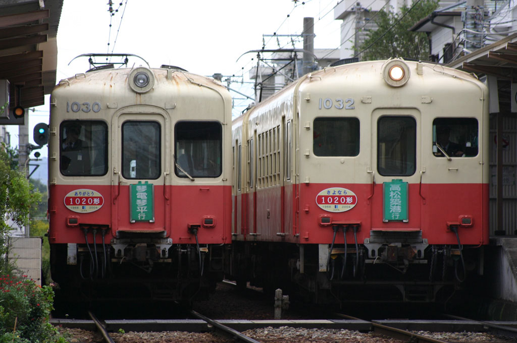 元名古屋鉄道の3700形。線路幅が異なるために台車変更が行われ、一部編成はカルダン化がなどが行われた。 8編成16両が移籍したが、1029+1030・1031+1032の2編成が琴平線で最後まで活躍し、2004年11月3日に引退している。 |