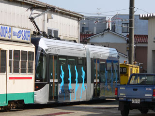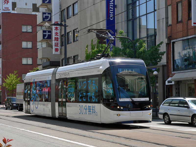 2009年に登場した環状線用車両。 後に予定されている富山ライトレールとの乗入れに対応するため、ライトレール車両とほぼ同仕様となっている。 白・銀・黒と車体色が異なる3編成が導入されている。 関連リンク:富山地方鉄道T100形 富山ライトレールTLR0600形 |