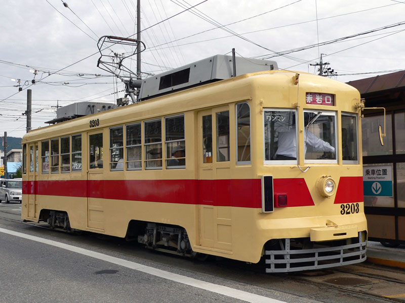 元名鉄のモ580形で、1977年(昭和52)に1両、1981年(昭和56)に2両の計3両が移籍した。 1994〜95年に冷房改造が行われ、現在は全面広告車となり活躍している。 2008年12月にモ3703が標準色に復元されている。 関連リンク:<路面アルバム> 名古屋鉄道モ580形 |