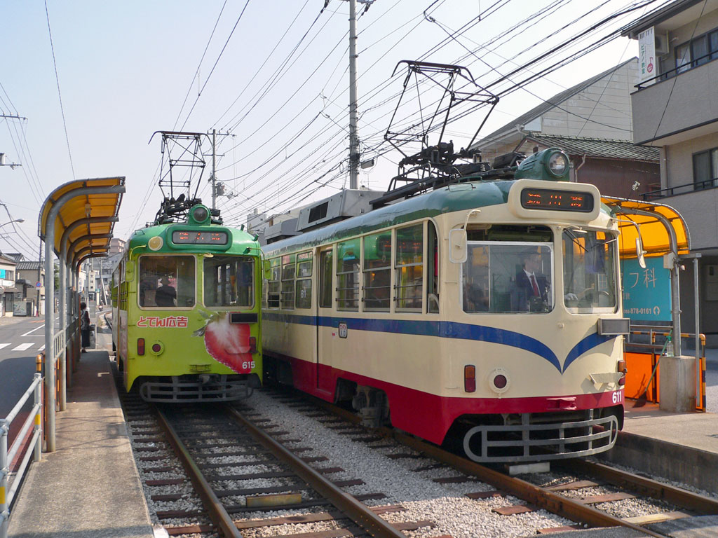 1957年(昭和32)に登場した、土佐電の主力車両。こちらは都営7000形を手本に設計されてる。 200形同様、製造年により細かい差異が見られ、直接制御・間接制御、台車、窓構造などバライティーに富んでいる。 601〜621号までは自社工場製で、622号からナニワ工機にて製造されている。 1982年(昭和57)から1996年にかけて全車両に冷房改造が行われ、現在も全31両が活躍している。 |